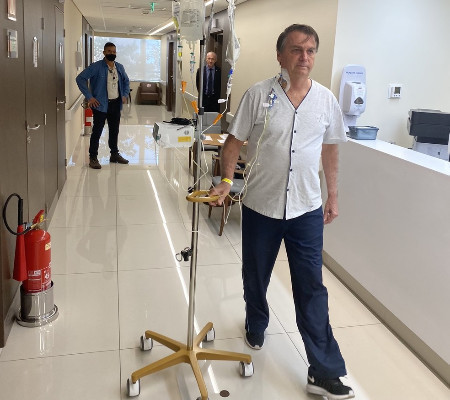 "Dada a facada que eu recebi e quatro cirurgias, essa obstrução [intestinal] é sempre um risco muito alto. Mas, graças a Deus, de ontem [quarta] para hoje [quinta], evoluiu bastante esse quadro. Então, a chance de cirurgia está bastante afastada", declarou Bolsonaro