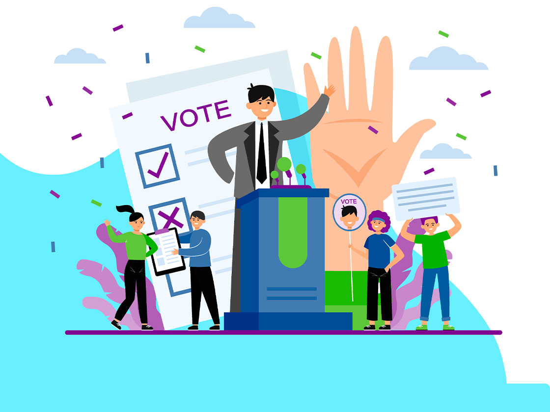 No caso de eleições majoritárias, como de prefeita e prefeito, é necessário informar, na propaganda eleitoral, os nomes das pessoas candidatas a vice e de todos os partidos que integram a coligação ou a federação.