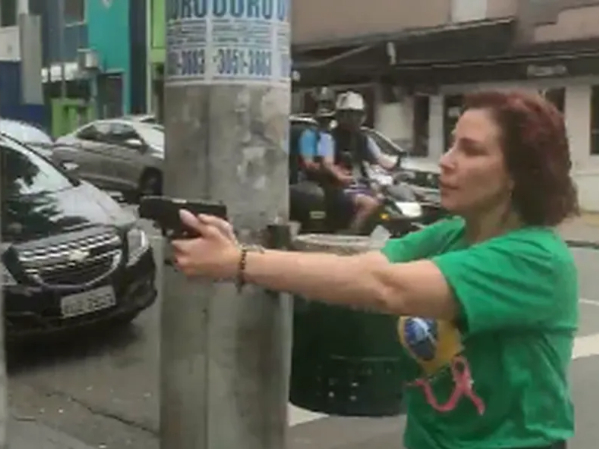Carla Zambelli saca e aponta arma para pessoas no meio da rua em São Paulo | Foto: Divulgação