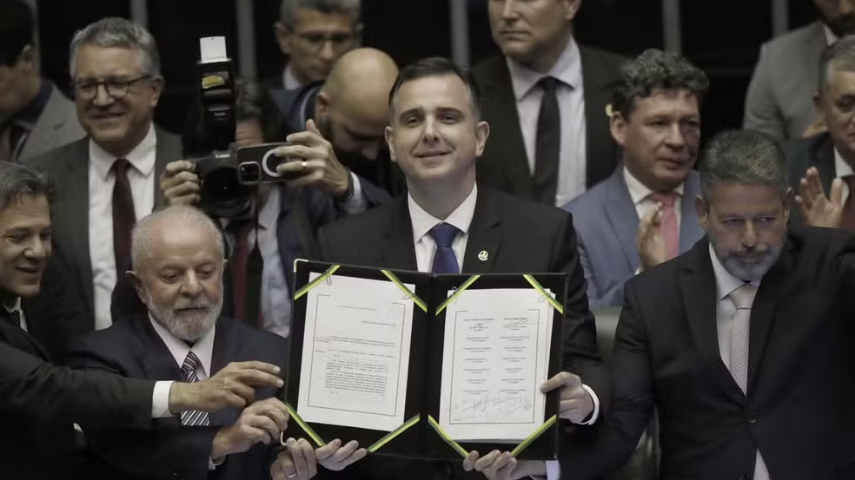 Lula afirmou para os parlamentares presentes que a foto da mesa do Congresso durante a promulgação é um importante símbolo do país, com políticos de diversas tendências representados. Entre as autoridades, além de Lula, estavam Pacheco e Lira.