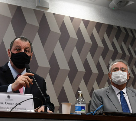 Os senadores Omar Aziz e Renan Calheiros nos trabalhos da CPI (Edilson Rodrigues / Agência Senado)