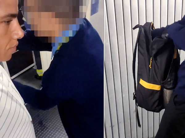 Nas imagens, é possível ver os policiais abrindo a mochila de Freitas e realizando uma revista pessoal
