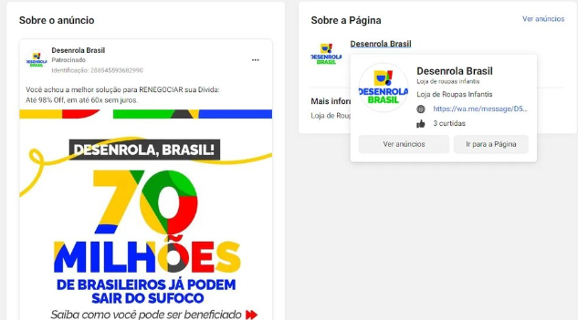Em alguns casos, os anúncios redirecionavam os usuários para sites que simulavam a consulta de elegibilidade ao programa. Esses sites fraudulentos pretendiam enganar as pessoas ao oferecer informações falsas sobre a possibilidade de participação no programa de renegociação de dívidas do governo federal. Além disso, outras publicidades direcionavam os usuários para atendimentos personalizados falsos no WhatsApp, visando aplicar golpes por meio de interações enganosas.