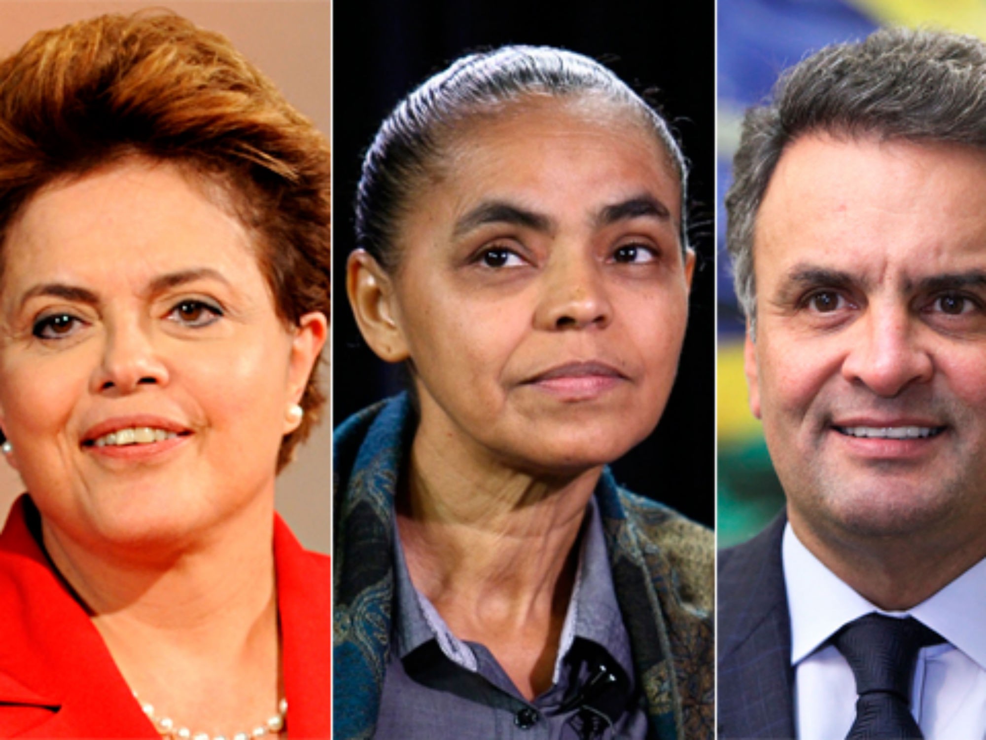 A presidente Dilma Rousseff (PT) abriu 8,6 pontos de vantagem sobre Marina Silva no primeiro turno das eleições, revela pesquisa do instituto MDA. A candidata à reeleição pelo PT tem 36% das intenções de voto, contra 27,4% da adversária do PSB. O candidato do PSDB, Aécio Neves, manteve a linha de crescimento, subindo mais 2,9 pontos, com 17,6% das intenções de voto.