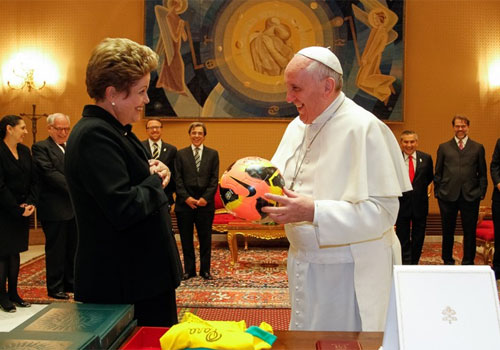 Dilma diz que fez apelo ao Papa para que “Deus não empurrasse a bola de ninguém” na Copa