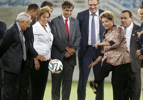 No discurso de abertura do novo estádio, a presidente ignorou os protestos de servidores federais que aconteceram do lado de fora da arena desde antes de a festa começar.