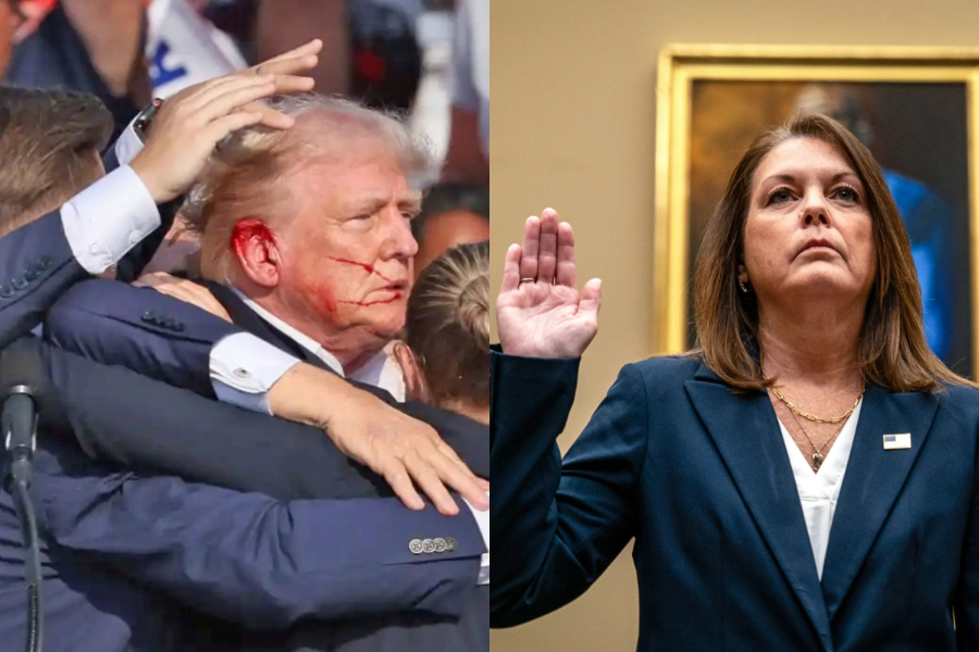 Montagem mostra atentado contra Donald Trump e Kimberly Cheatle | Foto: Montagem/MeioNews