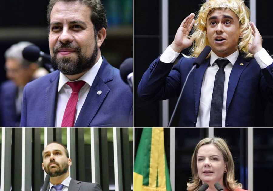 A lista também inclui três dos deputados mais votados do país nas últimas eleições: Nikolas Ferreira (PL-MG), Guilherme Boulos (PSOL-SP) e Eduardo Bolsonaro (PL-SP). Além deles, parlamentares que já se colocam como pré-candidatos às eleições municipais deste ano, como Rogério Correa (PT-MG), Maria do Rosário (PT-RS) e Tabata Amaral (PSB-SP), também aparecem na pesquisa.