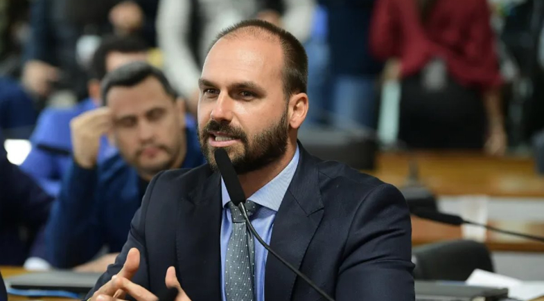 O deputado federal Eduardo Bolsonaro (PL-SP) e o jornalista Paulo Figueiredo admitiram nesta segunda-feira (21) que a possibilidade de os Estados Unidos aplicarem tarifas comerciais ao Brasil foi tema de reuniões que ambos participaram com autoridades do governo norte-americano, antes do então presidente Donald Trump anunciar a medida.