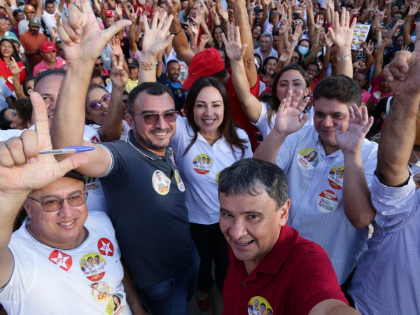 O candidato do PT a senador, Wellington Dias, participou, neste domingo (21), de um ato organizado pelo deputado estadual e candidato à reeleição, Fábio Xavier (PT), em Paes Landim, no sul do estado, juntamente com a deputada federal e candidata à reeleição, Rejane Dias (PT).
