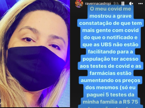 Pré-candidata ao Governo do Piauí, a advogada Ravenna Castro testou positivo para a Covid-19 na última semana. Em suas redes sociais, ela denunciou a alta exorbitante no valor dos testes nas farmácias, relatando ainda as dificuldades enfrentadas para obter atendimento.