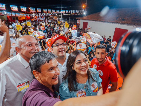 Após caminhadas e carreatas em Lagoa de São Francisco, Milton Brandão e Pedro II, Rafael Fonteles e Wellington Dias, candidatos a governador e senador pelo PT, concluíram a agenda desta quinta-feira, 1° de setembro, com um comício no município de Altos.