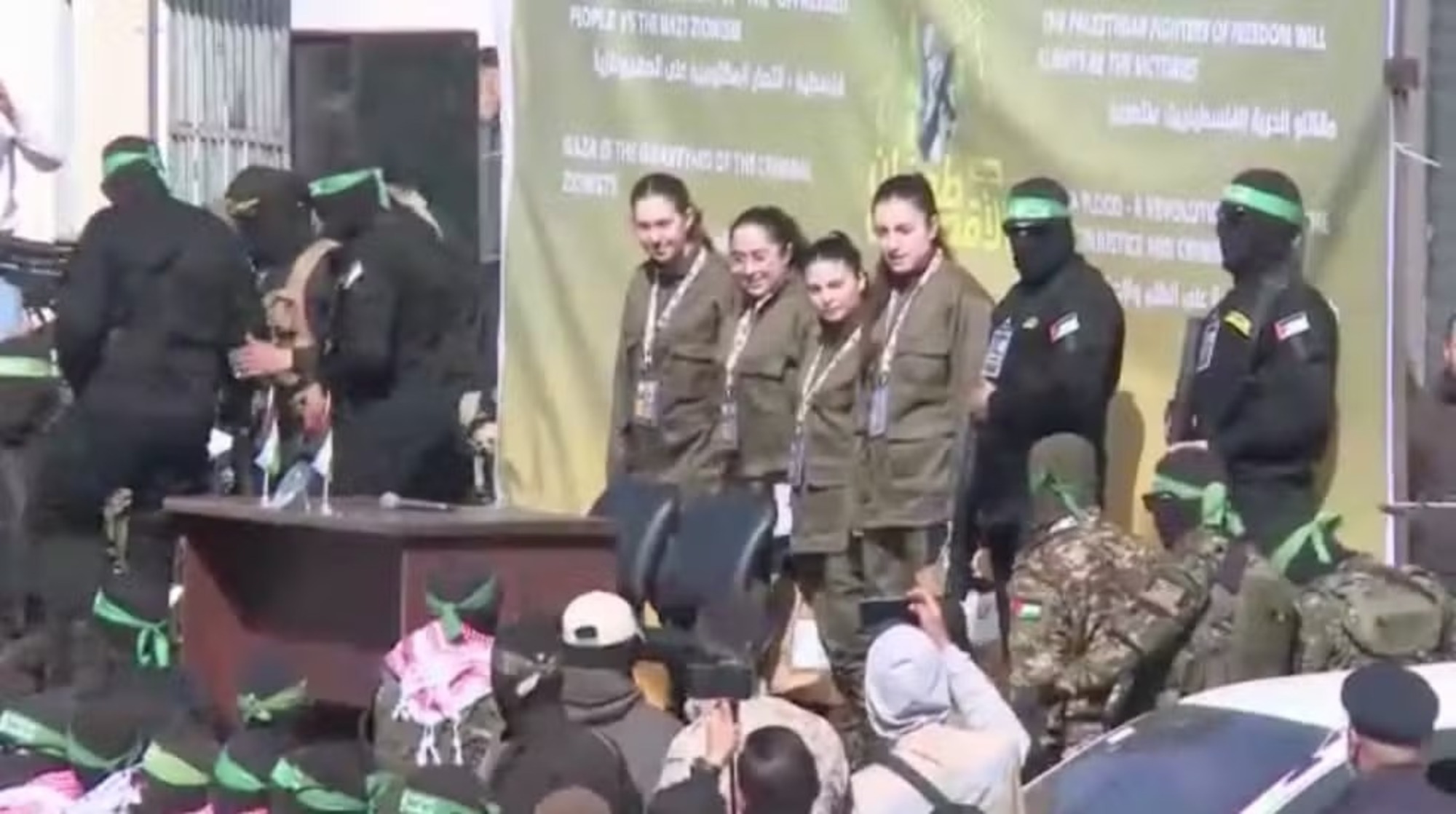 As reféns foram levadas a um palco na Cidade de Gaza, no meio de uma multidão de palestinos, cercadas por homens armados do Hamas. Elas acenaram e sorriram antes de entrarem nos veículos da Cruz Vermelha. Posteriormente, as autoridades israelenses confirmaram que elas já estavam sob sua custódia e passariam por avaliações médicas.