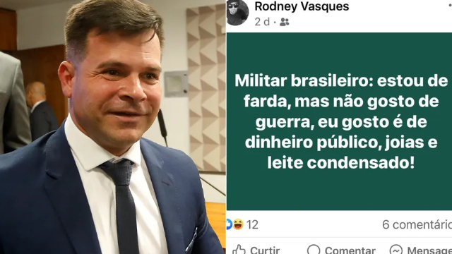 No conteúdo compartilhado em grupos de agentes da PRF, Rodney lança um comentário irônico sobre o perfil do "militar brasileiro". "Estou de uniforme, mas evito conflitos. Minha preferência é por recursos públicos, joias e leite condensado", ironiza o texto.