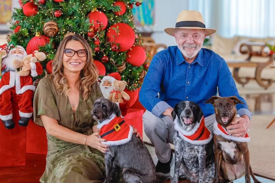 O presidente Luiz Inácio Lula da Silva compartilhou, nesta terça-feira (24), véspera de Natal, fotos ao lado da primeira-dama, Janja da Silva, e das cachorras do casal. Ele também mencionou a nova integrante da família, chamada Esperança, expressando o desejo de que ela os inspire a renovar esse sentimento tão essencial em suas vidas.