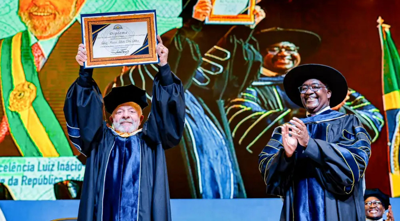 O presidente Luiz Inácio Lula da Silva recebeu, nesta segunda-feira (24), o título de doutor honoris causa em ciência política, desenvolvimento e cooperação internacional concedido pela Universidade Pedagógica de Maputo. A cerimônia ocorreu na capital de Moçambique, durante visita oficial que marca os 50 anos das relações diplomáticas entre os dois países.