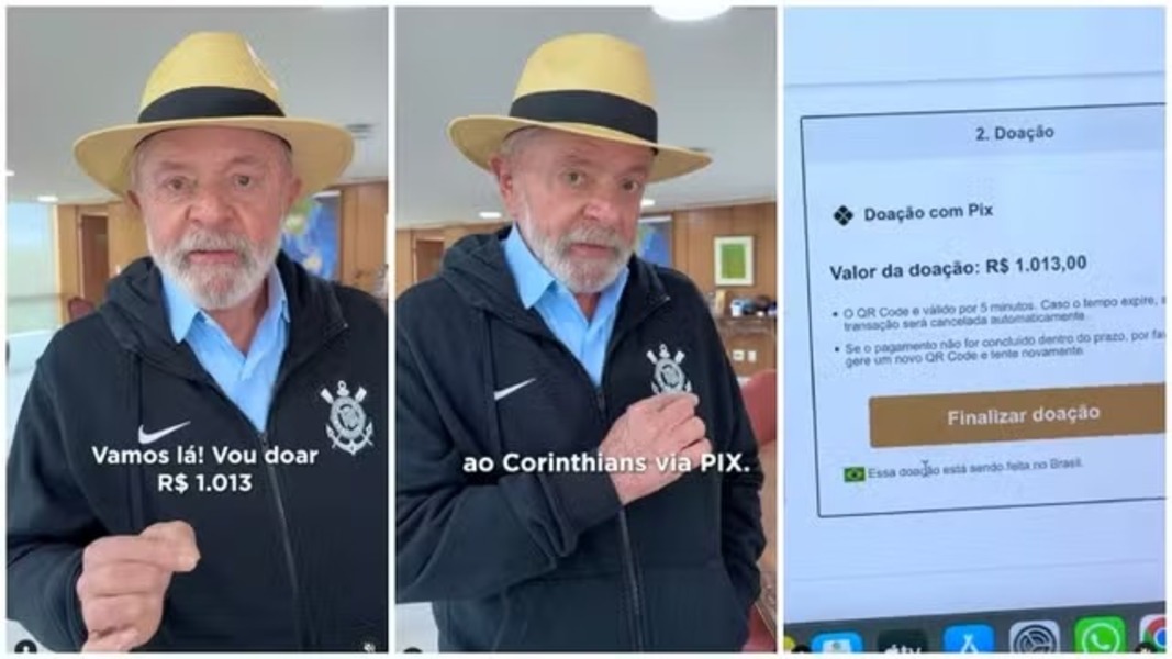 Lula transfere R$ 1.013,00 para o Corinthians e nega impostos nas transferências via pix | Foto: Reprodução