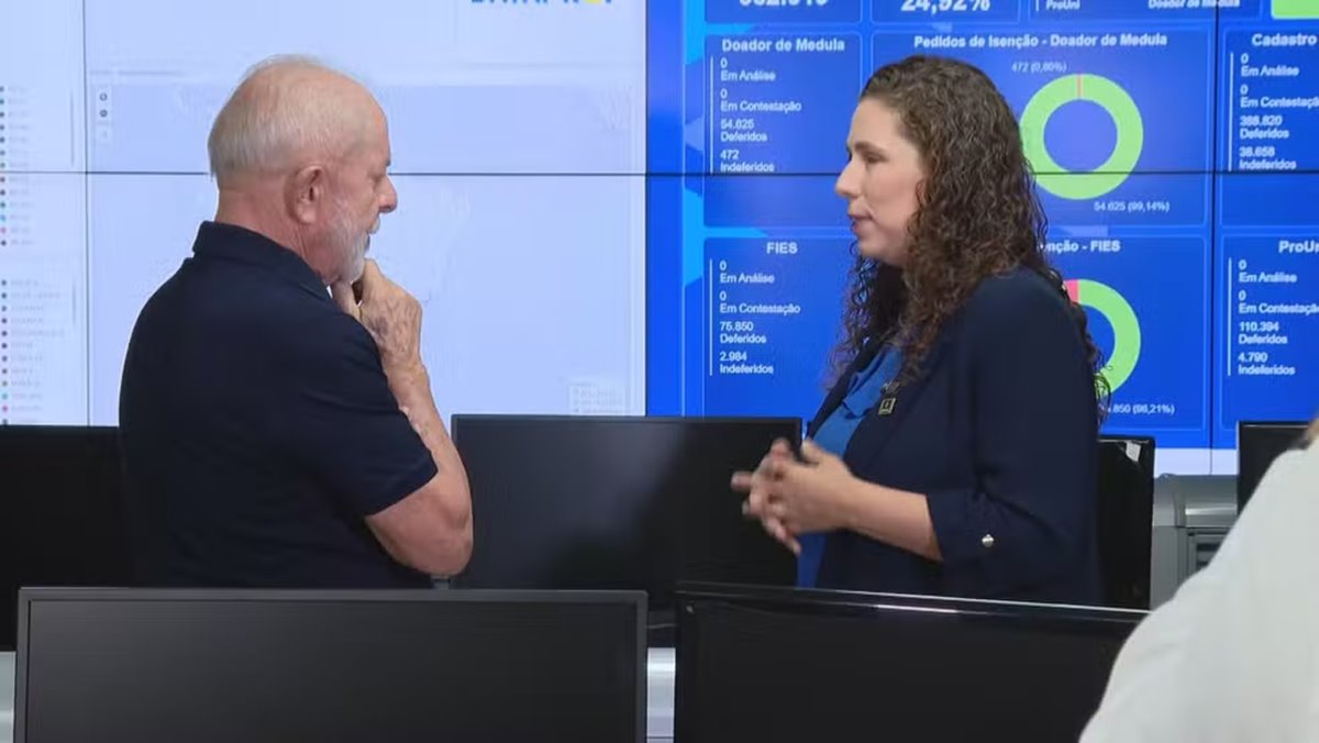 O presidente Lula (PT) visitou neste domingo (18) a sala de situação montada para monitorar a aplicação do CNU (Concurso Nacional Unificado), apelidado de "Enem dos concursos". Acompanhando Lula, estavam as ministras Esther Dweck (Gestão) e Sônia Guajajara (Povos Indígenas), os ministros Luiz Marinho (Trabalho) e Vinícius Carvalho (CGU), além de outras autoridades.