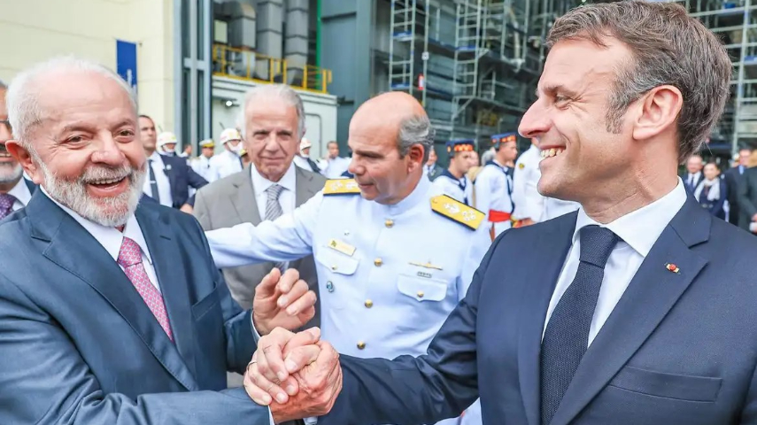 BATISMO DO SUBMARINO: No dia seguinte, os dois participaram da cerimônia de batismo e lançamento do submarino Toneleiro no Complexo Naval de Itaguaí, no Rio de Janeiro. A embarcação é fruto de uma parceria entre Brasil e França, no âmbito do Programa de Desenvolvimento de Submarinos (ProSub).