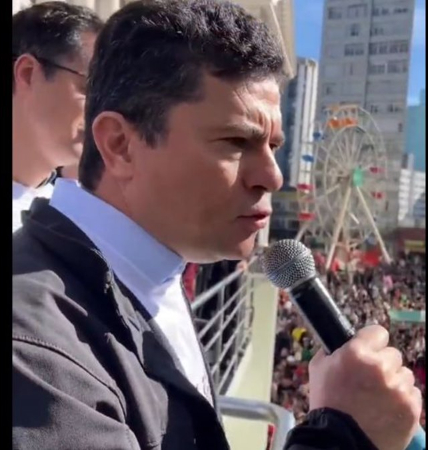 O senador e ex-juiz da Lava Jato Sergio Moro (União-PR) defendeu o ex-deputado Deltan Dallagnol (Podemos-PR) em discurso na Marcha para Jesus na manhã deste sábado (20), em Curitiba, no Paraná. Moro discursou em cima de um carro de som, ao lado de Deltan. Segundo ele, o ex-deputado foi cassado porque o Brasil "vive uma fase de ódio no coração e mente de algemas pessoas".