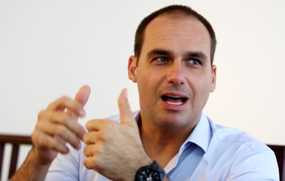 Agindo ocasionalmente como porta-voz informal da política externa conduzida pelo pai, o presidente Jair Bolsonaro e o chanceler brasileiro, Ernesto Araújo, Eduardo costuma se posicionar com frequência sobre assuntos ligados à governança regional e internacional.