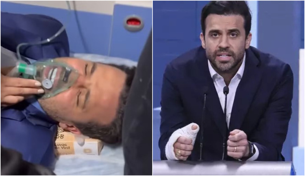 As imagens do candidato na ambulância, utilizando uma máscara de oxigênio e com a sirene ligada, foram compartilhadas em suas redes sociais. Exames realizados no hospital revelaram "traumatismo na região do tórax à direita e em punho direito, sem maiores complicações".