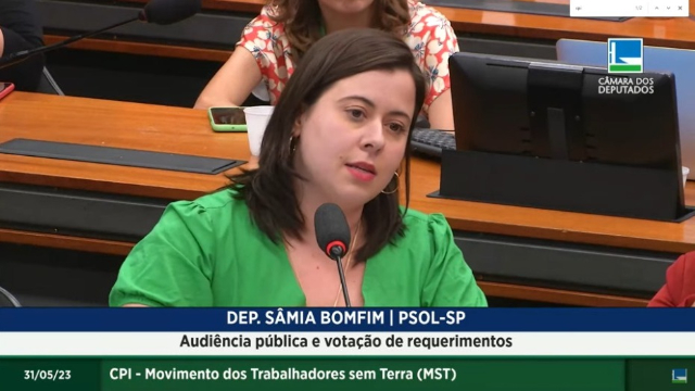Durante a sessão da CPI do MST ocorrida nesta quarta-feita (31), mais uma vez a deputada federal Sâmia Bomfim (PSOL- SP), teve seu microfone silenciado durante uma fala. Já é a terceira vez consecutiva que a parlamentar é silenciada enquanto vazia uma pergunta referente às próximas diligências da comissão. Durante o ocorrido Sâmia lembrou ao presidente sobre os inquéritos que ele possui na justiça, justamente por silenciá-la durante as reuniões da comimssão.