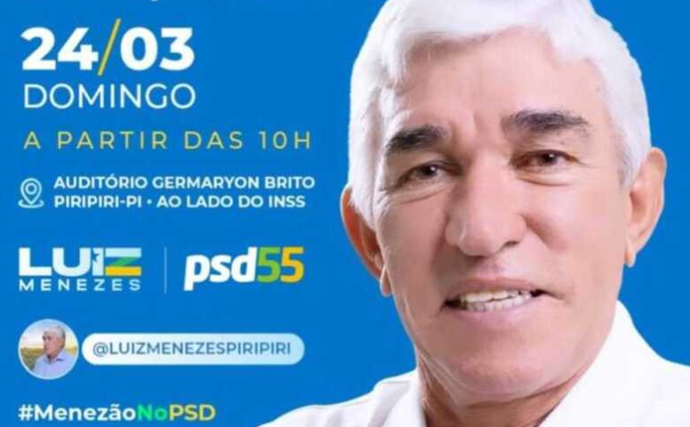 O ex-prefeito de Piripiri, Luiz Menezes, já tem data marcada para deixar o Progressistas e migrar para o PSD. A movimentação, que foi costurada pelo deputado estadual Georgiano Neto, terá seu desfecho final no próximo dia 24 de março.