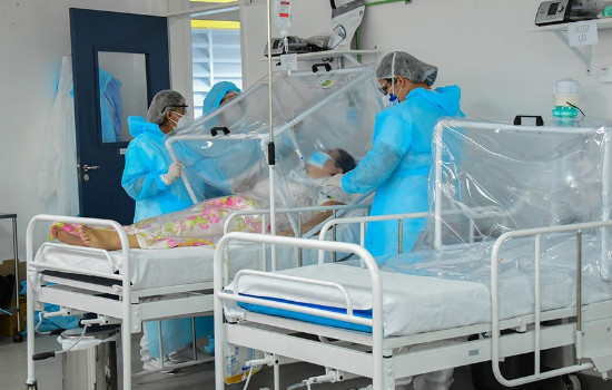Enfermeiros atendem paciente em hospital de campanha para covid-19 em Manaus (Foto: INGRID ANNE/Fotos Públicas)