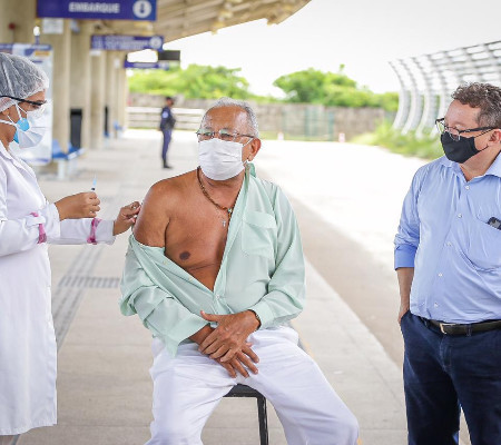O gestor de 74 anos, que é médico, tomou a dose do imunizante no posto drive thru instalado no Terminal do Livramento, zona Sudeste da capital. Doutor Pessoa chegou em seu próprio carro e não havia filas no local.