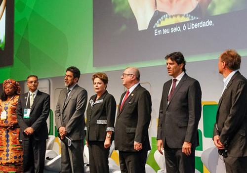 A presidente Dilma Rousseff sancionou o Marco Civil da Internet durante a NETMundial, encontro realizado em São Paulo que reúne representantes de mais de 90 países, entre eles 27 ministros. "A internet que queremos só é possível em um cenário de respeito aos direitos humanos, em particular a privacidade e a liberdade de expressão. Os direitos que as pessoas têm offline também devem ser protegidos online", declarou Dilma.