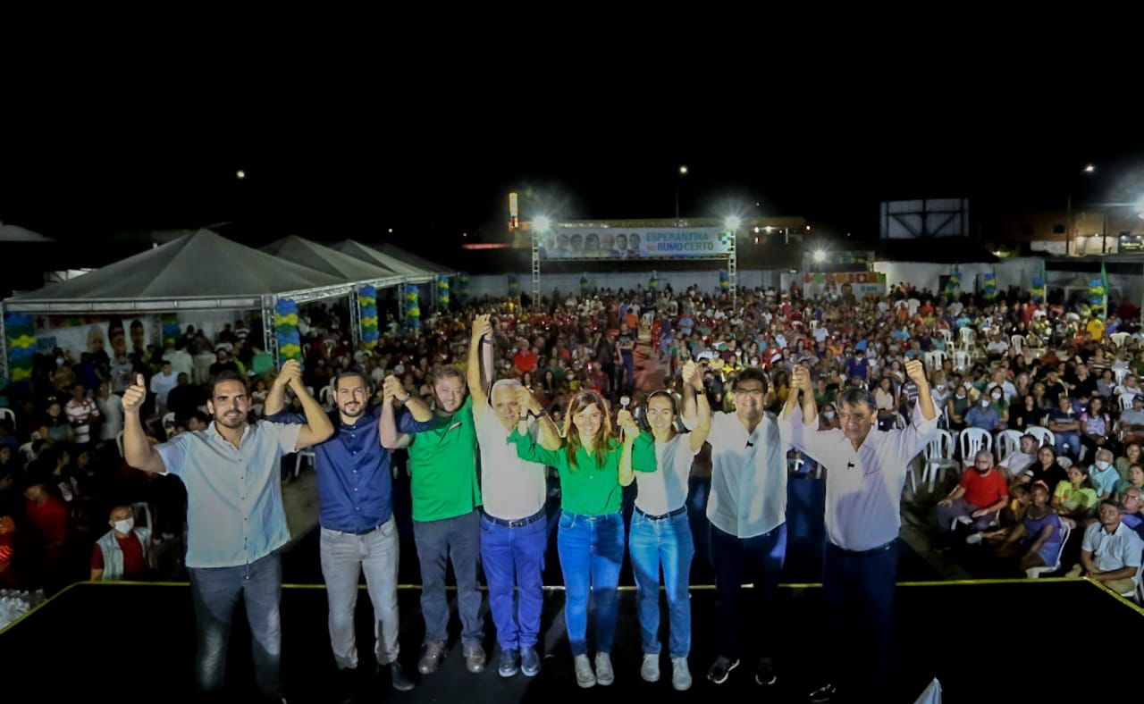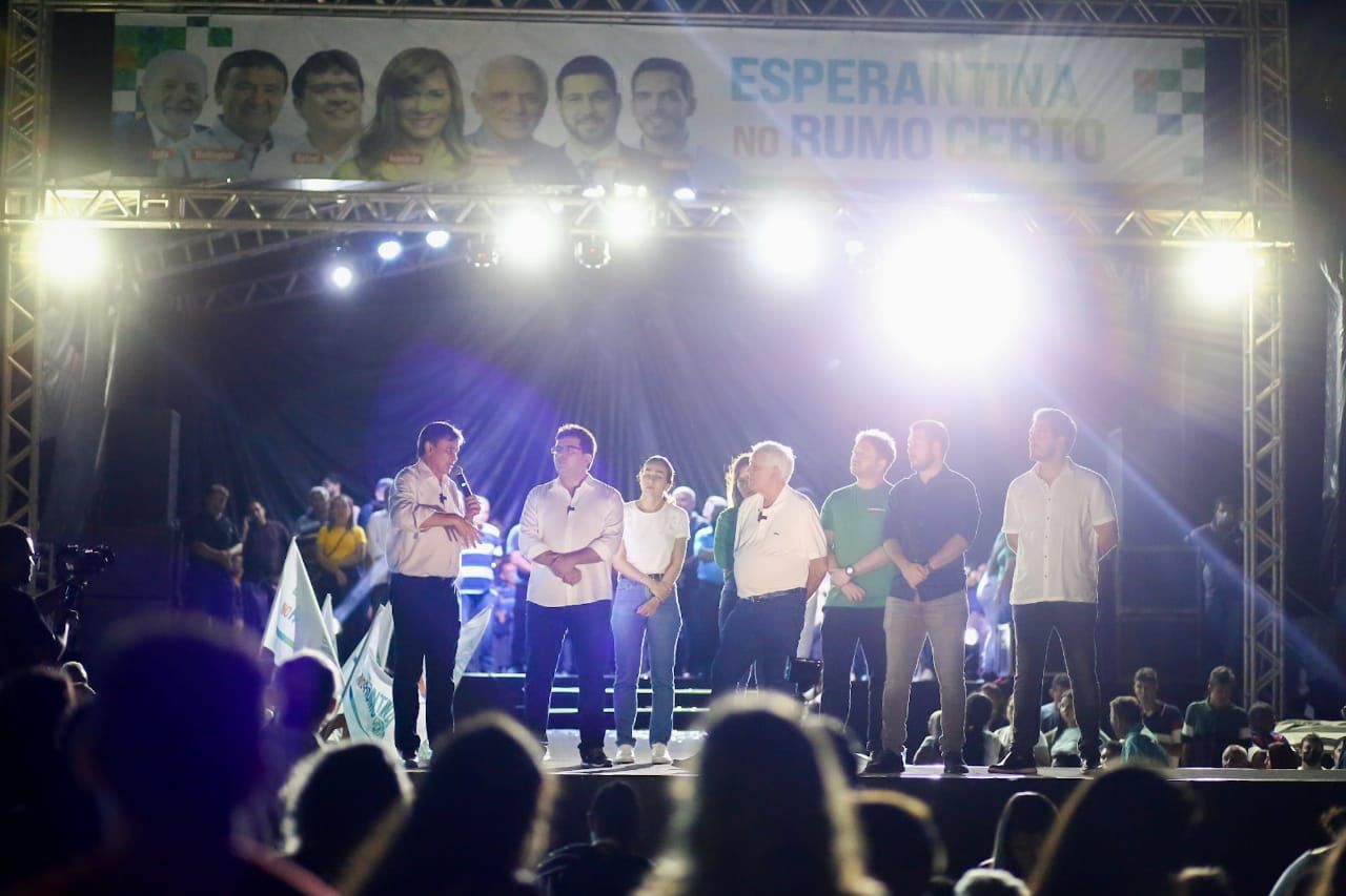 Os pré-candidatos do PT a governador, Rafael Fonteles, e a senador, Wellington Dias, participaram nesta sexta-feira (13), em Esperantina, do evento de lançamento das pré-candidaturas do deputado federal Marcos Aurélio Sampaio à reeleição e de Felipe Sampaio a deputado estadual.