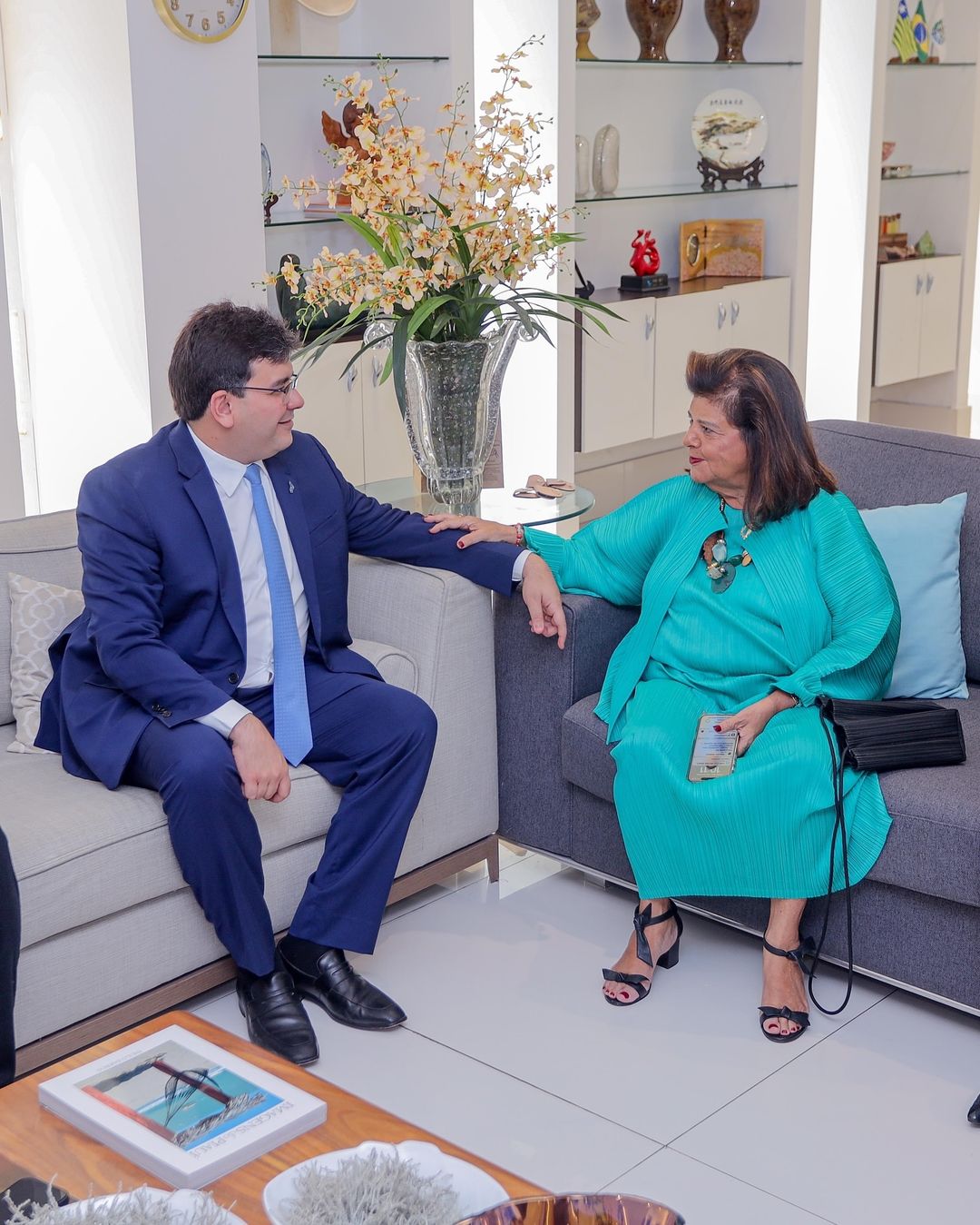 O governador do Piauí, Rafael Fonteles (PT) recebeu no início da tarde desta sexta-feira, a empresária Luiza Trajano, presidente do Conselho de Administração das Lojas Magazine Luiza, no Palácio de Karnak.