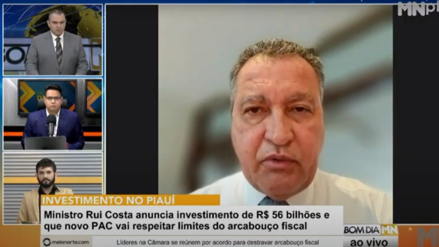 O ministro-chefe da Casa Civil do governo Lula (PT), Rui Costa, anunciou que o novo Programa de Aceleração do Crescimento (PAC), que terá investimento de R$ 1,7 trilhão para todo o país, tem a expectativa de gerar cerca de 3 milhões de empregos diretos e indiretos. Durante uma entrevista à Rede Meio Norte e à TV Jornal Meio Norte, realizada nesta quarta-feira (30), o ministro também confirmou que o Piauí receberá R$ 56 bilhões em investimentos por meio do programa.