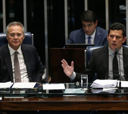 Em seguida, ele afirma que o ex-juiz foi vendido como a cura dos males, não serve para nada. Uma vez no cargo o ex-juiz, segundo Renan, se desmoralizou e não respondeu às pertinentes perguntas da entrevistadora do programa Fantástico da Tv Globo.
