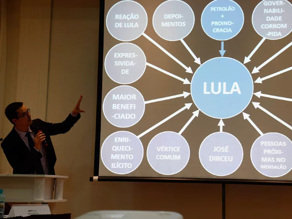 Deltan usou uma apresentação de PowerPoint  para fazer ataques a Lula em 2016