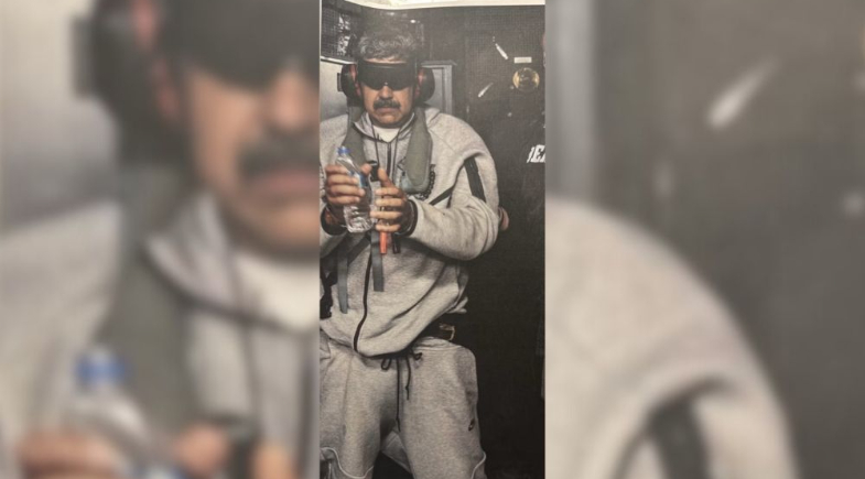 O presidente Donald Trump divulgou uma imagem de Nicolás Maduro vendado com óculos, de moletom e supostamente algemado.