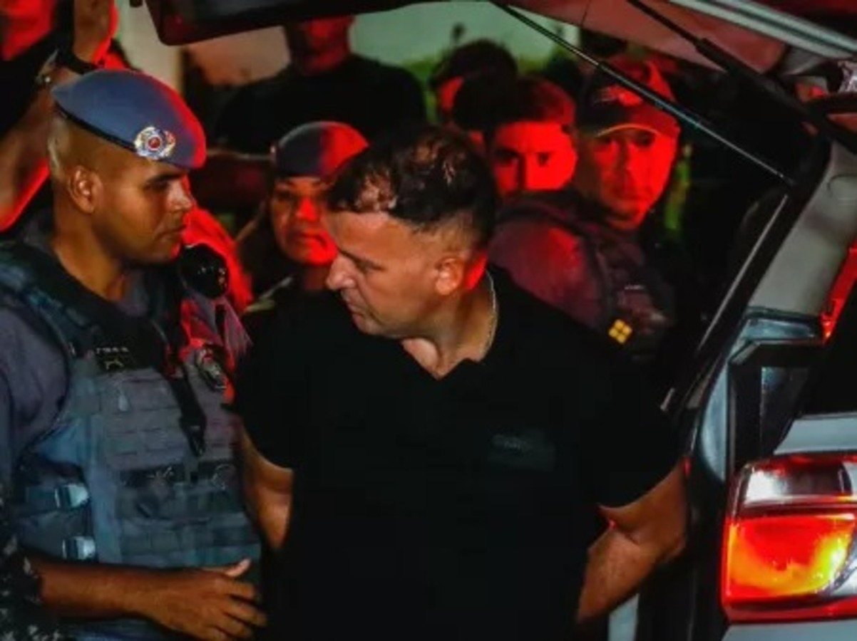 Henrique aparece sendo conduzido por agentes após a chegada das autoridades ao local.
