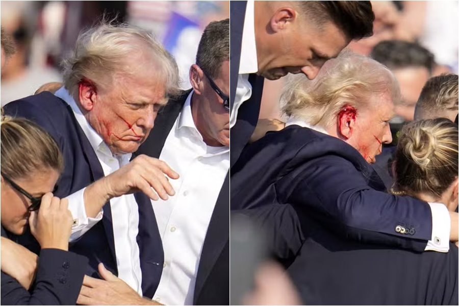 Segundo o ex-presidente, ele foi atingido por uma bala que perfurou a parte superior da sua orelha direita. Vídeos mostram Trump colocar as mãos no rosto e se abaixar em busca de proteção, assim como os seus apoiadores.