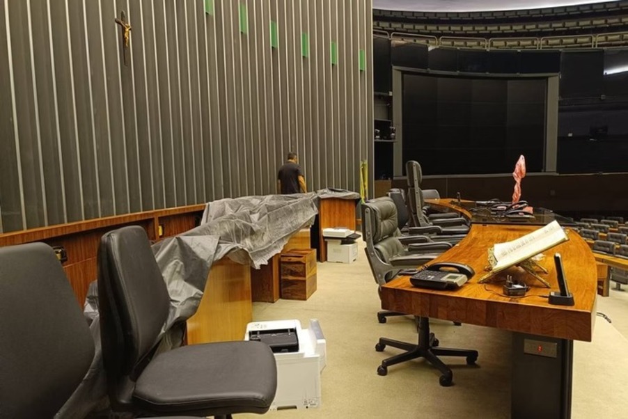 Imagens gravadas mostram o momento em que a água invade o plenário, enquanto servidores tentam proteger os equipamentos. A causa do vazamento foi atribuída ao entupimento de um cano na cobertura da Câmara, que já foi desobstruída. Apesar do incidente, a Câmara afirmou que o vazamento não compromete as atividades legislativas.