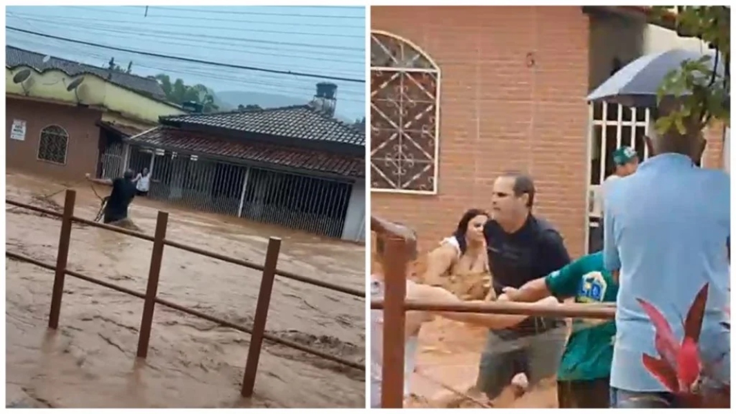 Uma forte tempestade atingiu a cidade de Dom Silvério, na Zona da Mata mineira, na última terça-feira (7), provocando destruição e deixando dezenas de famílias em situação de risco. O prefeito José Bráulio Aleixo, juntamente com moradores, utilizou uma corda para resgatar pessoas que estavam ilhadas em uma residência devido à inundação.