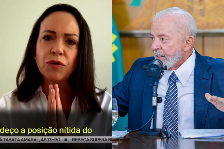 Montagem mostra Maria Corina Machado e presidente Lula | Foto: Montagem/MeioNews