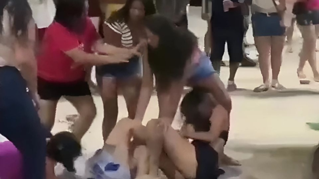 Vídeos que circulam nas redes sociais mostram duas mulheres em uma briga física, com trocas de socos, empurrões e puxões de cabelo, chegando a rolar no chão. Enquanto algumas pessoas tentavam intervir para apartar a confusão, outras acabaram se envolvendo, agravando o tumulto.