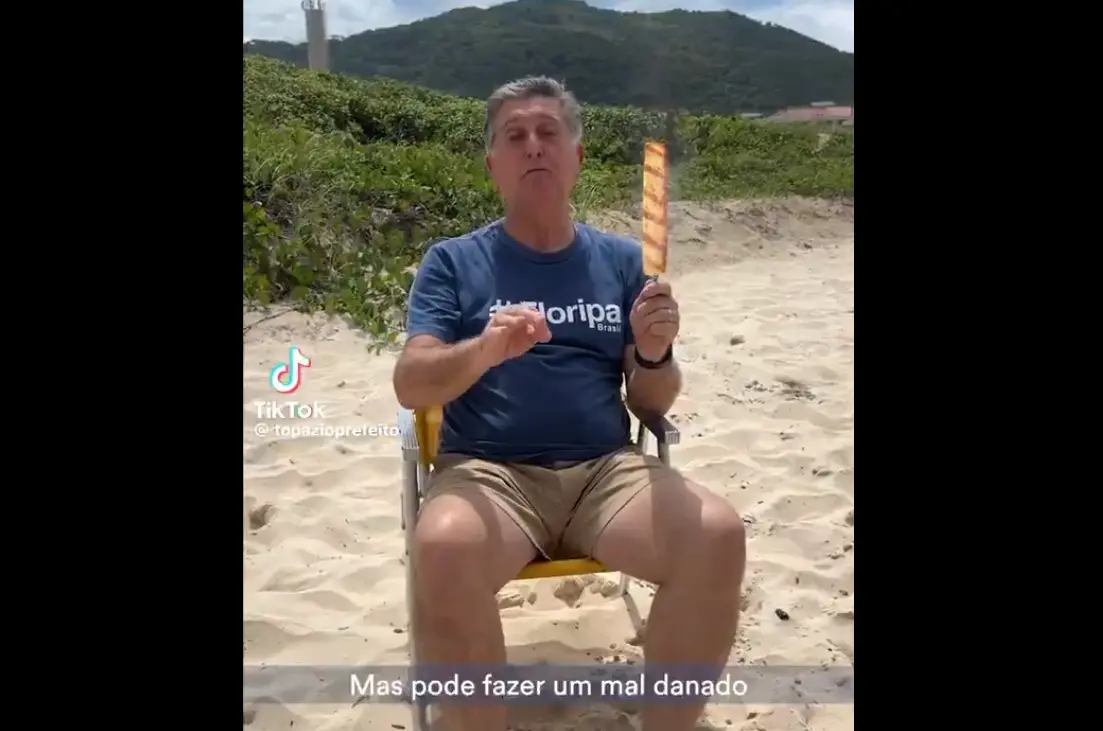 Ele ainda alertou os banhistas sobre os riscos de consumir alimentos vendidos na praia: “Se não quer passar as férias com ‘piriri’, já sabe: nada de queijinho e outros alimentos perigosos para a sua saúde.”