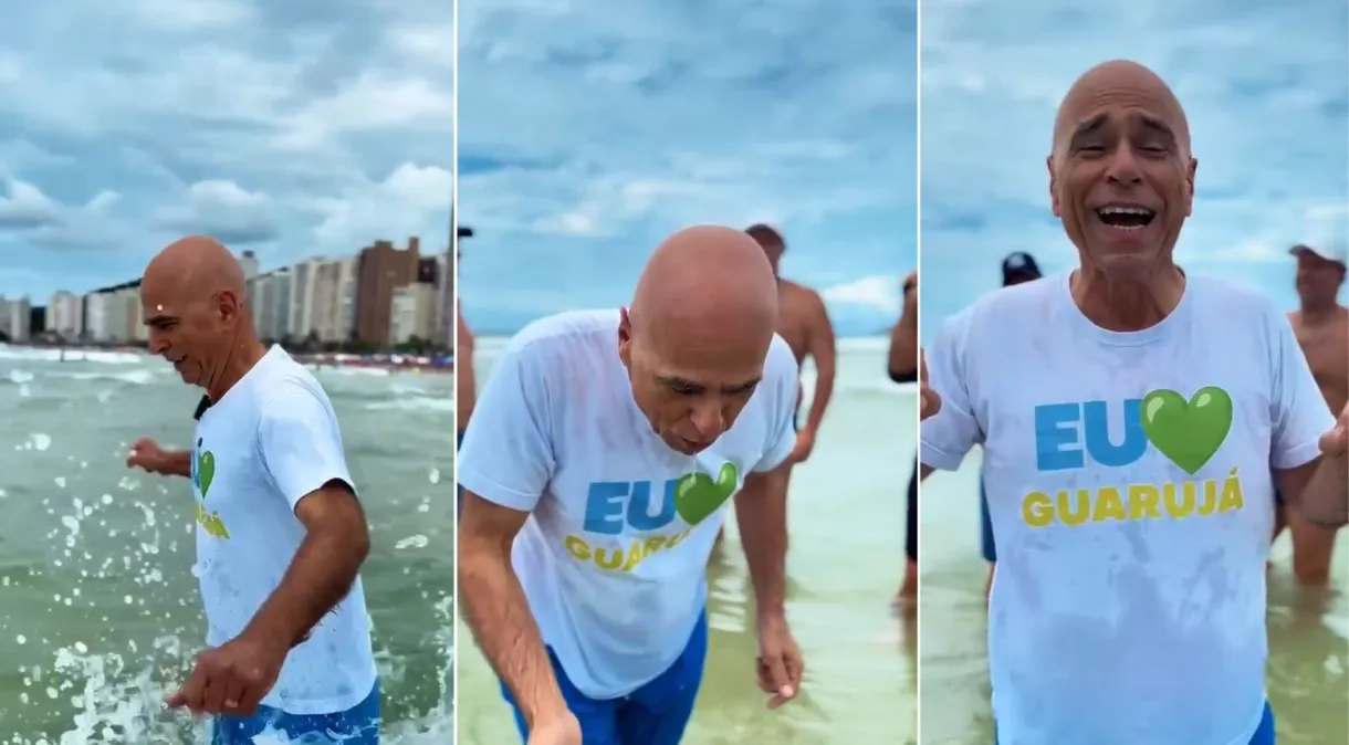 O prefeito de Guarujá (SP), Farid Said Madi (Podemos), divulgou um vídeo em que aparece bebendo água do mar como forma de reforçar a mensagem de que as praias da cidade estão limpas e seguras para os visitantes. Em janeiro, um surto de virose no litoral paulista ultrapassou 11 mil casos.
