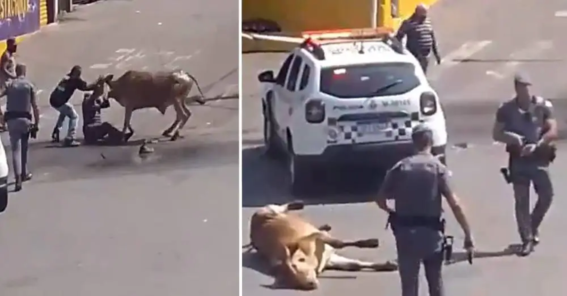 O incidente começou quando o animal, aparentemente enfurecido, atacou um homem na rua. Após a intervenção de populares e dois policiais militares, o homem foi retirado do local. A situação parecia estar sob controle, mas um dos policiais permaneceu próximo ao boi, que continuava agitado. Quando o animal avançou, o policial disparou, matando-o instantaneamente.