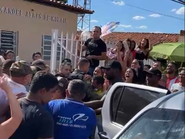 Do lado de fora da sede da Câmara do município, o ex-vereador José Wilson foi hostilizado por populares. Uma equipe de segurança precisou fazer escolta.
