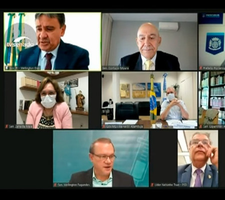 Wellington Dias e Flávio Dino participam de audiência pública, na segunda-feira (10), da Comissão Temporária da Covid-19, solicitarem ao Senado apoio diplomático para liberação do IFA (Ingrediente Farmacêutico Ativo) por países que detêm esse insumo, eles pediram atenção na manutenção dos financiamentos e planejamento logístico para assegurar a estrutura da rede de saúde, a fim de evitar novos colapsos no atendimento.