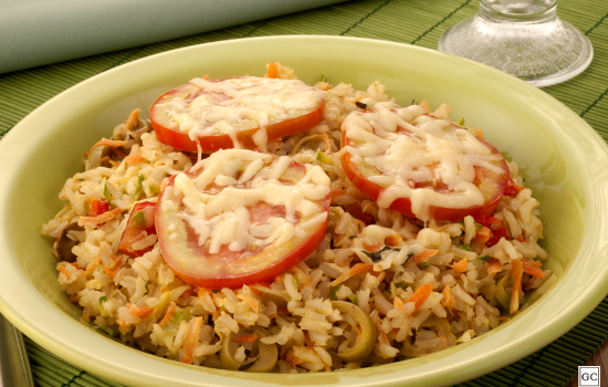 - 3 xícaras (chá) de arroz integral ou branco cozido