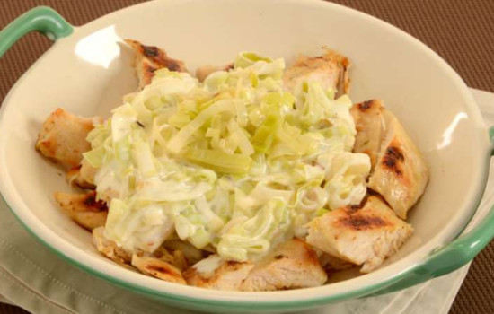 - Desligue, espalhe sobre as tiras de frango e sirva.